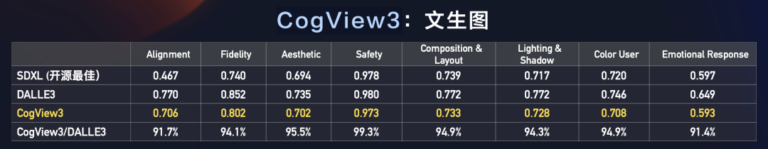 多模態(tài)-文生圖:CogView3在文生圖多個(gè)評(píng)測(cè)指標(biāo)上,相比DALLE3約在91.4%-99.3%的水平之間。