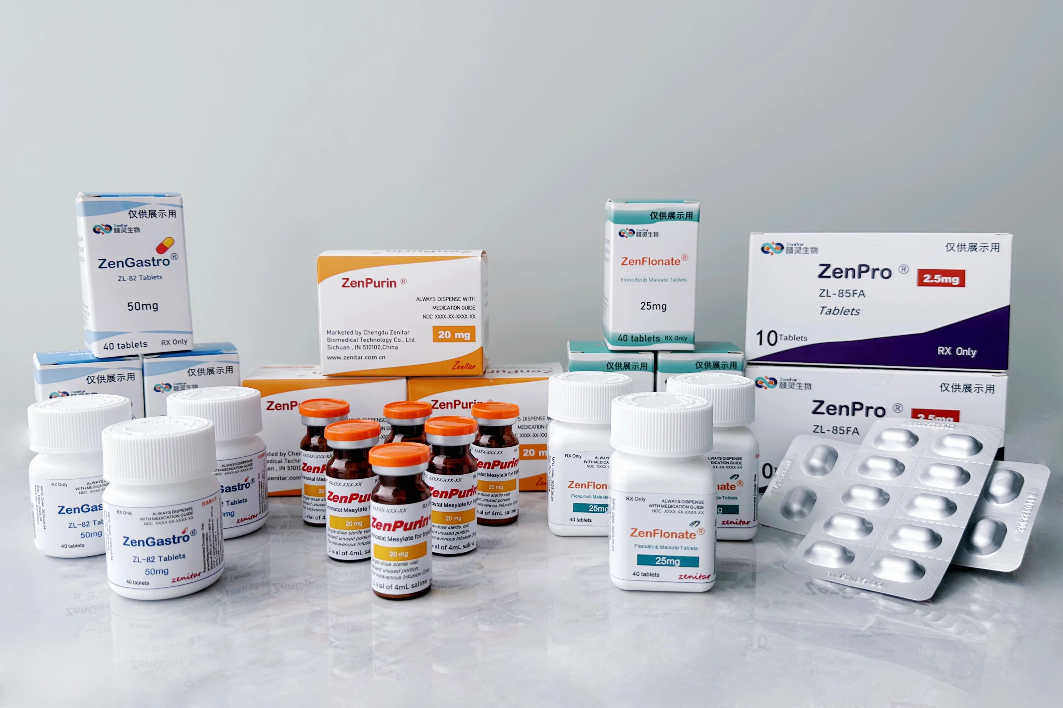 賾靈生物臨床在研品種ZL-82、PM、FM、ZL-85FA(從左至右)產(chǎn)品展示