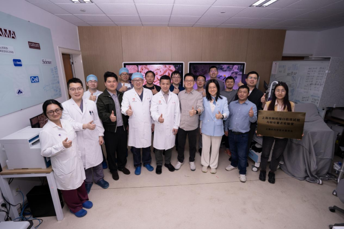 中國首例無線侵入式腦機(jī)接口系統(tǒng)前瞻性臨床試驗術(shù)后項目團(tuán)隊合影留念