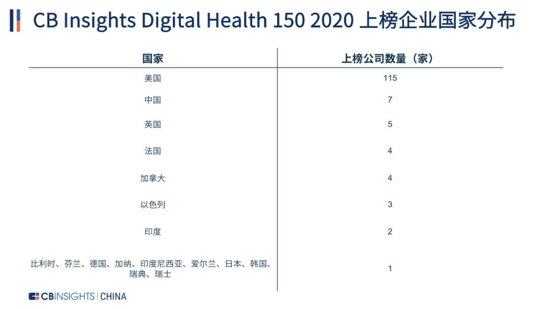 數(shù)字醫(yī)療 150 2020 上榜企業(yè)國家分布(數(shù)據(jù)來源:CB Insights)