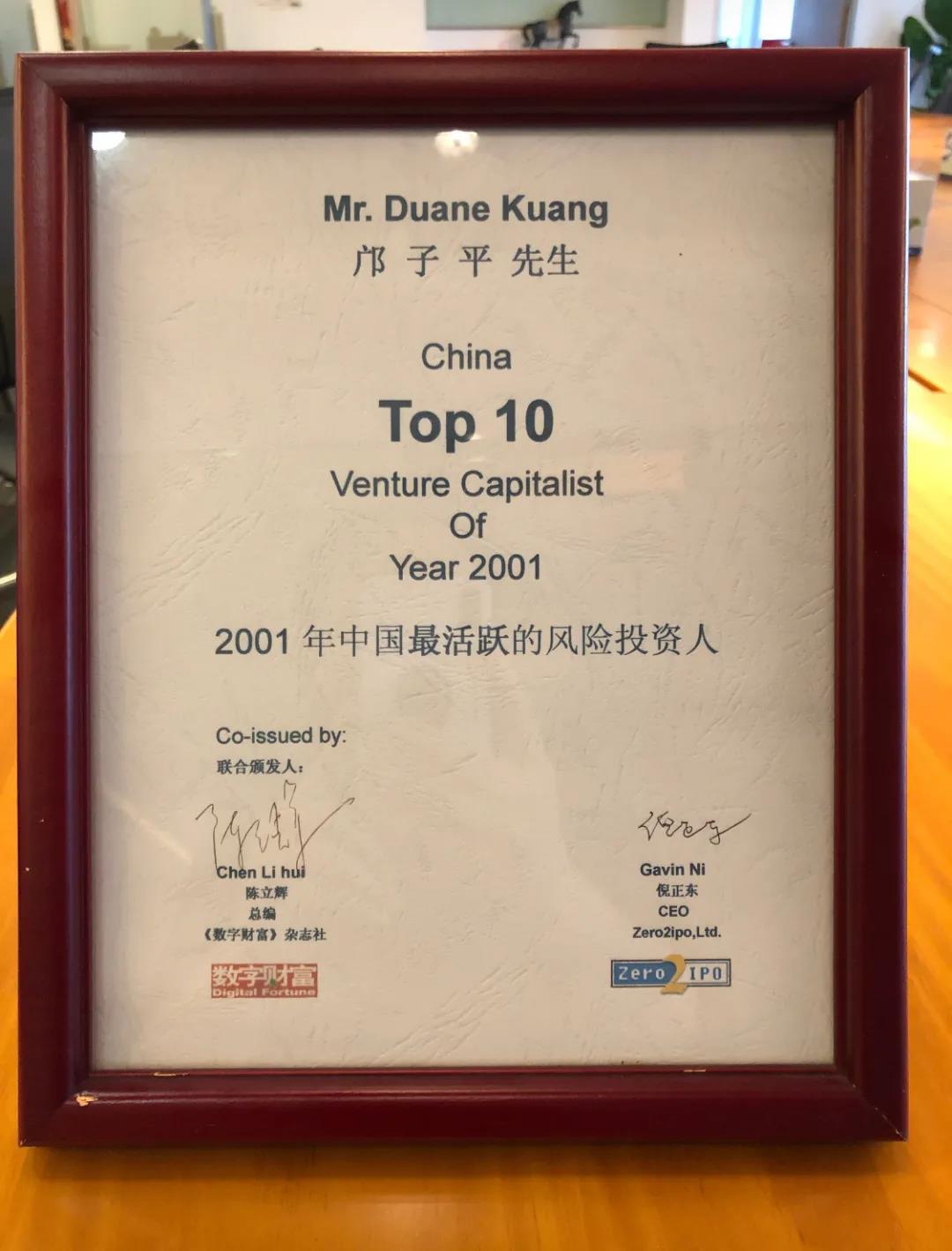 啟明創(chuàng)投創(chuàng)始主管合伙人鄺子平于2001年榮膺清科中國最活躍的風險投資人TOP10