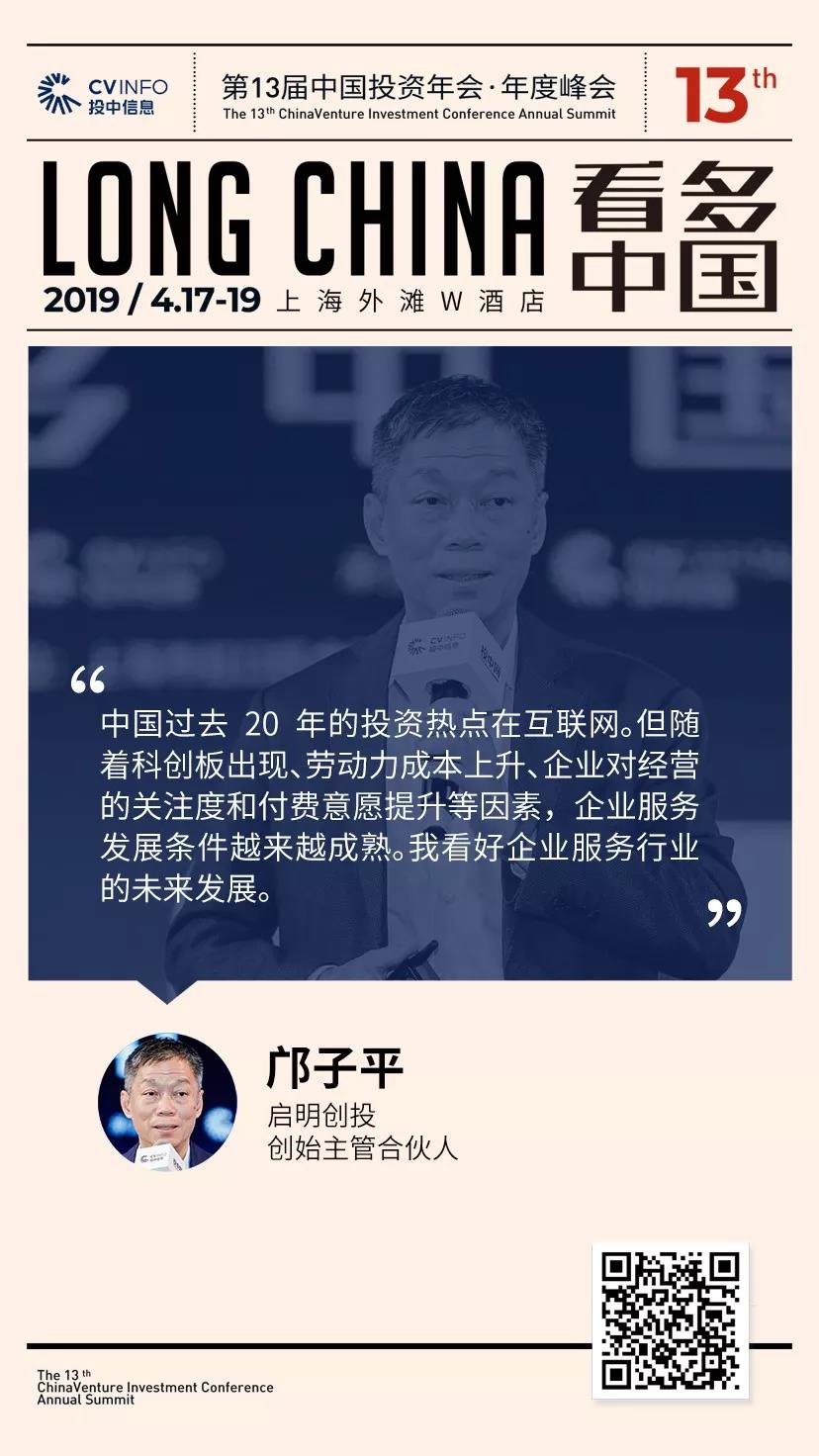4月19日,在此次峰會上,鄺子平就“二十年投資生涯的‘高光’與‘至暗’”主題進行了精彩分享。在演講中,他特別指出,看好企業(yè)服務領(lǐng)域的發(fā)展空間。至于原因,他稱是因為目前這一行業(yè)還未真正起飛,隨著科創(chuàng)板的到來,勞動力成本上升、企業(yè)家對經(jīng)營的關(guān)注,企業(yè)付費的意愿增高等,企業(yè)服務領(lǐng)域會有較大發(fā)展空間。