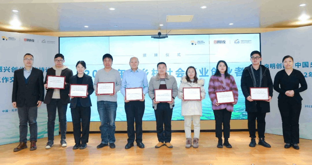 工作交流會(huì)上,中國鄉(xiāng)村發(fā)展基金會(huì)、啟明創(chuàng)投為8位鄉(xiāng)村社會(huì)事業(yè)創(chuàng)業(yè)者和10位點(diǎn)位實(shí)訓(xùn)產(chǎn)業(yè)創(chuàng)業(yè)者、10位“鄉(xiāng)村啟明星”產(chǎn)業(yè)創(chuàng)業(yè)者(獲得種子基金支持)分別頒發(fā)紀(jì)念牌。