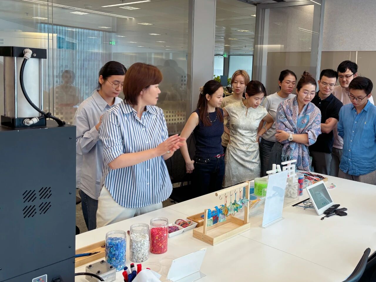 活動現(xiàn)場,員工齊聚塑料再生工作坊,將日常辦公產(chǎn)生的塑料瓶、包裝外殼等廢棄物重新創(chuàng)意加工,通過多道專業(yè)的機(jī)械式再生處理工序——分揀、清洗、粉碎、熱熔等,將原本可能被填埋或焚燒的塑料垃圾,轉(zhuǎn)化為兼具實用性與紀(jì)念意義的環(huán)保文創(chuàng)作品。員工以實際行動踐行低碳理念,實現(xiàn)了創(chuàng)意與環(huán)保的深度融合。