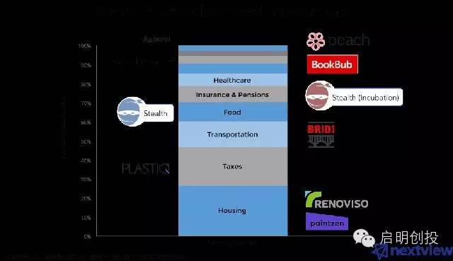 在NextView,我的合伙人和我慎重地遵循著一幅投資中的消費(fèi)者地圖?!熬o跟資金的流向”是我們的投資策略,該策略占了我們所有投資組合的50%之多。開始的時(shí)候,我們將美國消費(fèi)者支出看作是虛假財(cái)富地圖,然后找出創(chuàng)企能夠卷起市場(chǎng)風(fēng)云的機(jī)會(huì)。我們的結(jié)論很簡(jiǎn)單,但也很重要,那就是:當(dāng)某創(chuàng)企把發(fā)展方向放在消費(fèi)者支出比重最大的領(lǐng)域時(shí),它的市場(chǎng)影響力一定會(huì)擴(kuò)大。