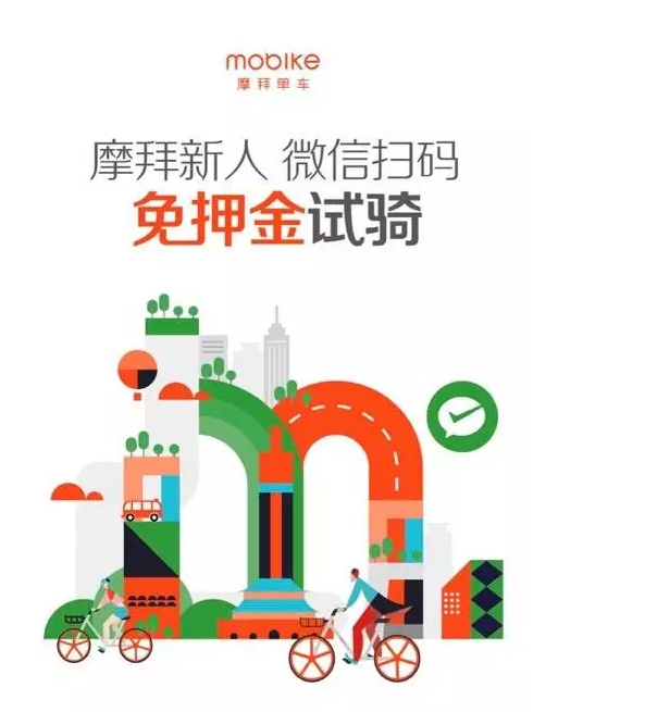 今天,摩拜單車推出了小程序端專屬福利:新用戶免押金試騎活動。新用戶注冊掃碼,就能免押金騎行;交納押金,還能獲得騎行月卡,想騎幾次騎幾次。