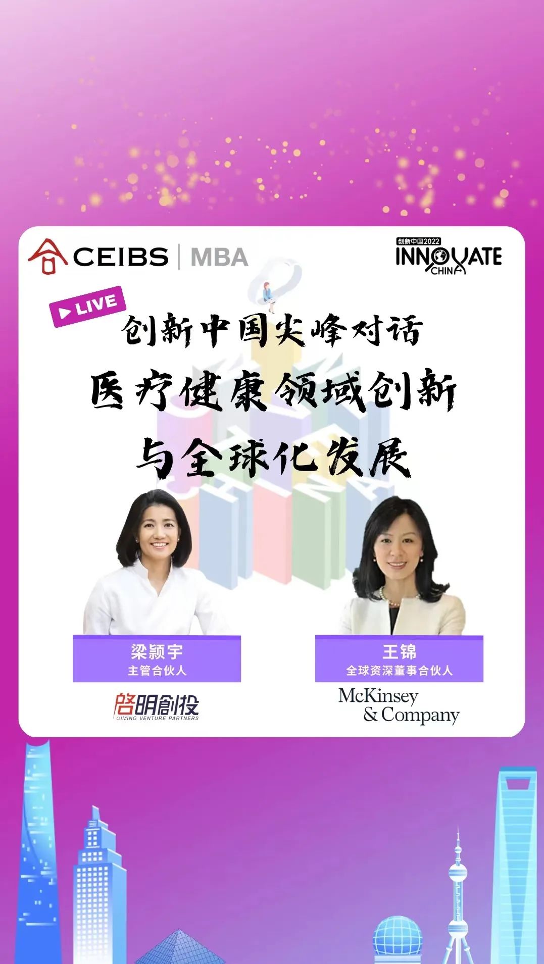 早在十幾年前,啟明創(chuàng)投就成立專業(yè)的投資團(tuán)隊(duì),專注醫(yī)療健康投資,并在醫(yī)療健康領(lǐng)域成為全球最具有影響力的創(chuàng)投機(jī)構(gòu)之一。在經(jīng)歷了多個(gè)周期后,啟明創(chuàng)投如何看待醫(yī)療健康領(lǐng)域的變化和投資機(jī)會,中國創(chuàng)新在全球的影響力發(fā)生哪些變化?近期麥肯錫全球資深董事合伙人王錦與啟明創(chuàng)投主管合伙人梁颕宇展開深度對話,圍繞上述問題分享了各自的見解。