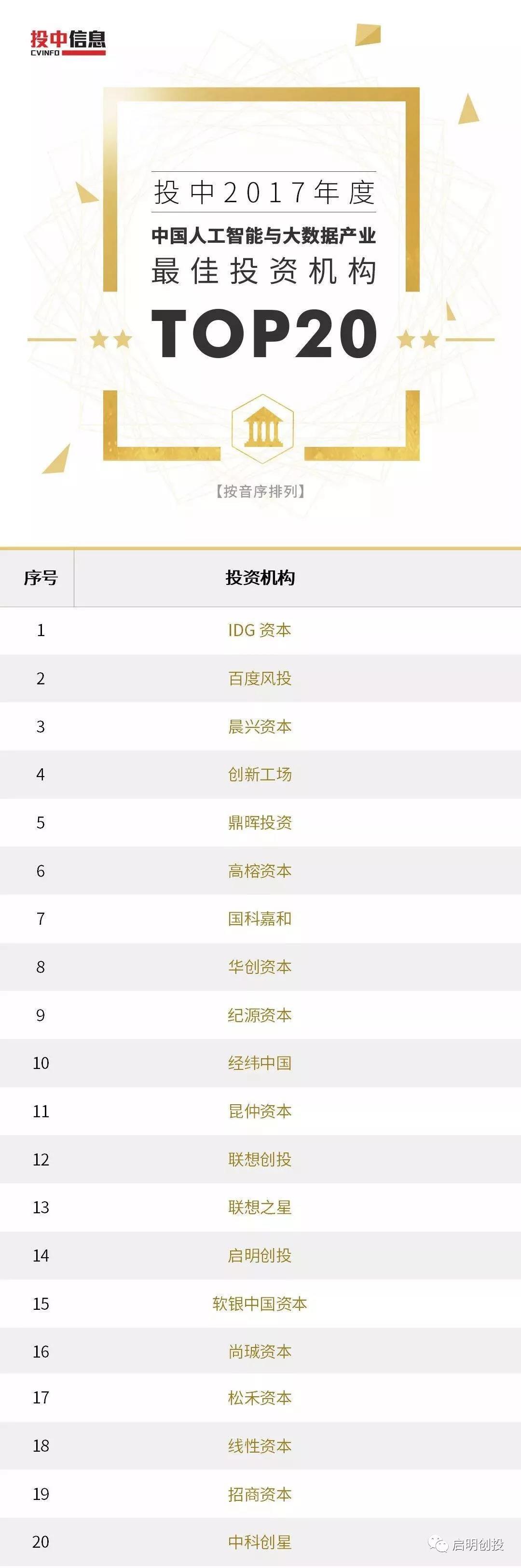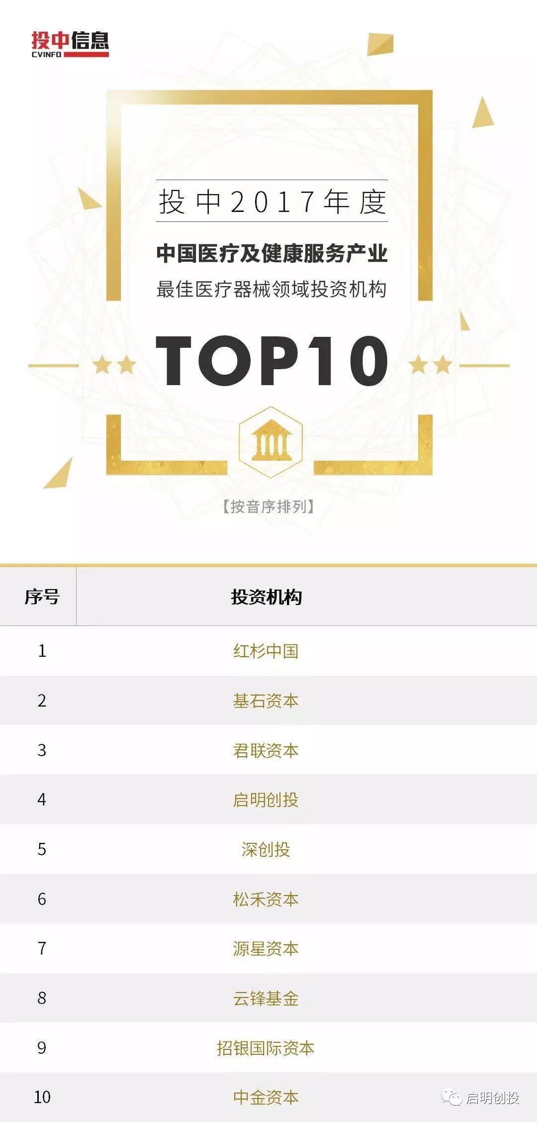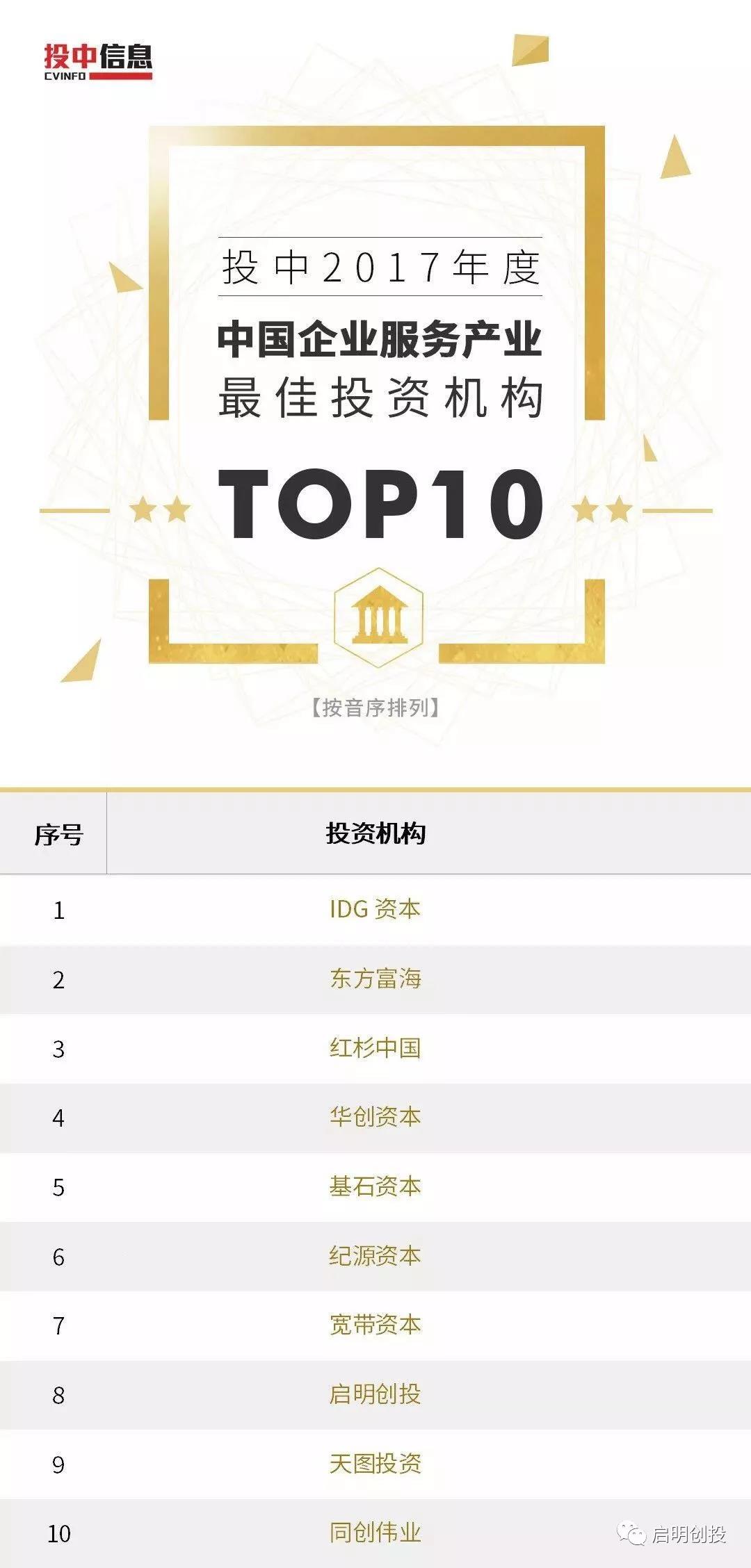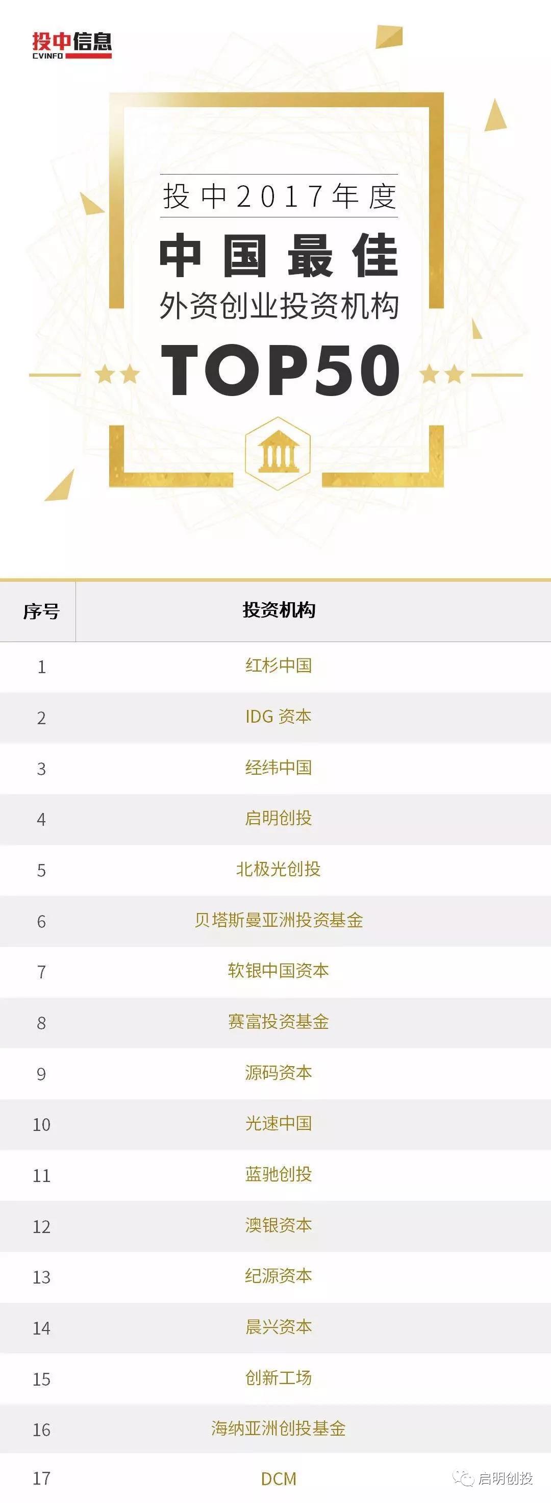 4月24日,投中信息正式發(fā)布“投中 2017年度榜”榜單。在機構榜單中,啟明在各個行業(yè)領域全面開花,囊獲8項機構類別獎項,包括年度機構最大獎——中國最佳創(chuàng)業(yè)投資機構Top100 第10位、中國最佳外資創(chuàng)業(yè)投資機構Top50 第4位、最佳互聯(lián)網(wǎng)/移動互聯(lián)網(wǎng)領域投資機構Top10、中國醫(yī)療及健康服務產(chǎn)業(yè)最佳生物醫(yī)藥領域投資機構Top10、中國新能源與清潔技術產(chǎn)業(yè)最佳投資機構Top10、中國人工智能與大數(shù)據(jù)產(chǎn)業(yè)最佳投資機構Top20、中國企業(yè)服務產(chǎn)業(yè)最佳投資機構Top10。