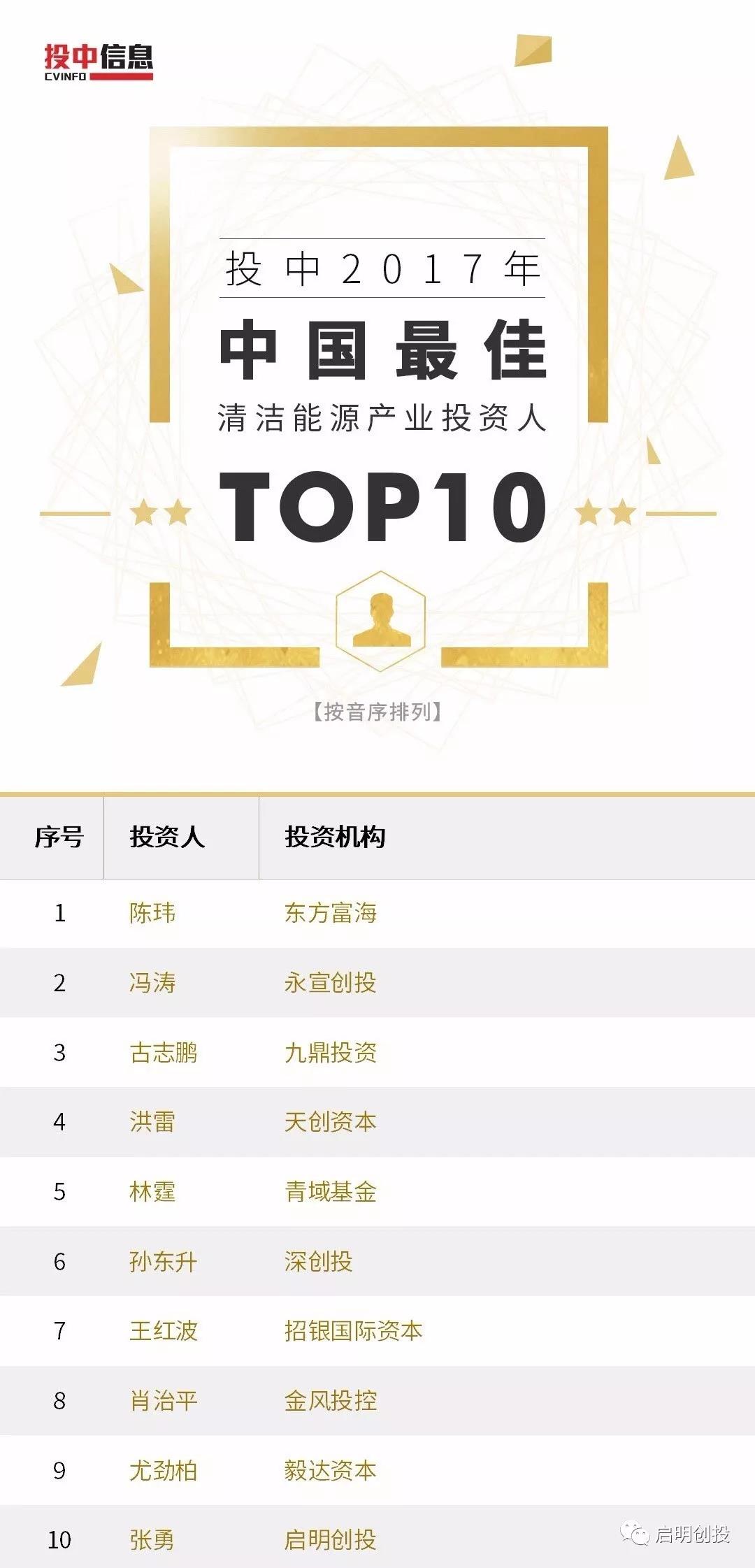 甘劍平也同時榮獲中國最佳互聯(lián)網(wǎng)產(chǎn)業(yè)投資人Top10;胡旭波和梁穎宇同時上榜中國最佳醫(yī)療健康產(chǎn)業(yè)投資人十強,這也是榜單上唯一一家機構同時有兩位投資人進入前10榜單;鄺子平入圍中國最佳人工智能產(chǎn)業(yè)投資人Top10;張勇則入圍中國最佳清潔能源產(chǎn)業(yè)投資人Top10。