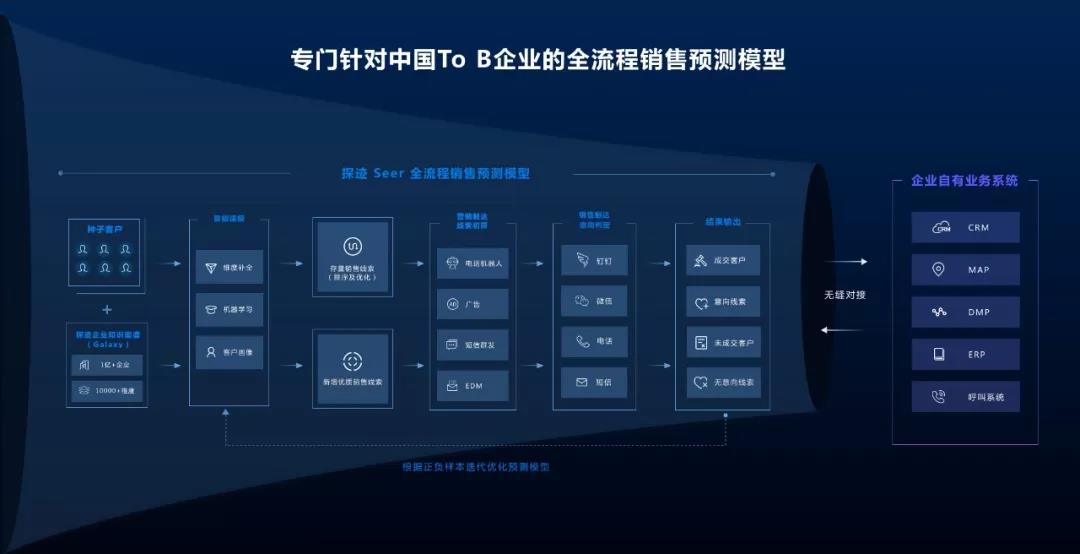 針對(duì)企業(yè)銷售場(chǎng)景,探跡科技并不僅僅是提供一個(gè)具體的AI算法,而是把不同的算法嵌入覆蓋線索挖掘、商機(jī)觸達(dá)、客戶管理到成單分析的銷售全流程中,打造完整的智能銷售閉環(huán)。為幫助企業(yè)能夠?qū)崿F(xiàn)客戶的全生命周期智能管理,探跡科技打造了極具競(jìng)爭優(yōu)勢(shì)的產(chǎn)品矩陣和解決方案。自2016年開始陸續(xù)推出企業(yè)知識(shí)圖譜、銷售預(yù)測(cè)模型,2017又推出了SaaS級(jí)的探跡線索平臺(tái)、市場(chǎng)分析模型,并在今年推出探跡AI電話機(jī)器人等新產(chǎn)品。通過兩年的不懈努力和深入探索,探跡科技已經(jīng)幫助了一千多家中國企業(yè)實(shí)現(xiàn)業(yè)績突破,同時(shí)實(shí)現(xiàn)了自身的高速發(fā)展。據(jù)悉,目前探跡科技已構(gòu)建出全網(wǎng)最全的超一億家企業(yè)和上萬個(gè)分析維度的企業(yè)知識(shí)圖譜,同時(shí)擁有TB級(jí)別的語料庫,形成強(qiáng)大的數(shù)據(jù)壁壘,并在機(jī)器學(xué)習(xí)、NLP(自然語言處理)、大規(guī)模分布式爬蟲等技術(shù)等多項(xiàng)的核心專利和著作權(quán)。