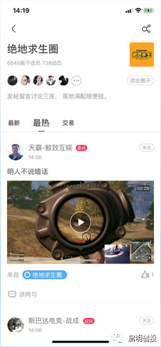 “圈”是由暴雞電競首創(chuàng)的“所見即所得”式互動(dòng)社區(qū)。“舉個(gè)例子,游戲玩家在直播平臺(tái)或其他社區(qū)類產(chǎn)品看到大神秀‘五殺’操作的視頻,要么不可能跟主播一起開黑,要么根本不知道大神是誰。而在暴雞‘圈’里看到的短視頻或圖文,發(fā)布者即是大神本人,玩家能直接進(jìn)行溝通關(guān)注,滿足社交需求,雙方還可以回到游戲內(nèi)進(jìn)行教學(xué)指導(dǎo)或娛樂陪玩?!北╇u電競CEO官志遠(yuǎn)說。