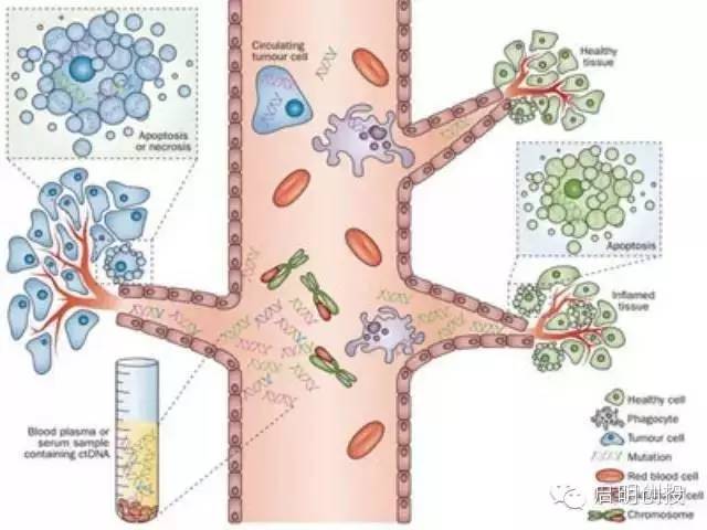 五、EGFR血液檢測 研究顯示,大部分晚期NSCLC患者的血液中存在循環(huán)游離DNA(cfDNA,cell free DNA)。cfDNA主要來源于凋亡或壞死的細胞,包括正常細胞和腫瘤細胞,如果來自腫瘤細胞稱為循環(huán)腫瘤DNA(ctDNA)。但血液游離DNA片段通常較短,在晚期癌癥患者血液中濃度極低,平均約為17微克每升。