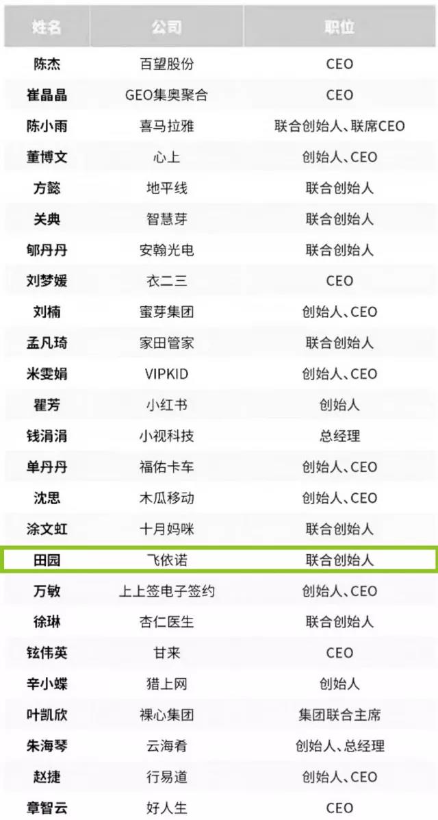 近日,福布斯公布了“2018中國商界25位潛力女性”榜單,飛依諾聯(lián)合創(chuàng)始人田園女士入選。