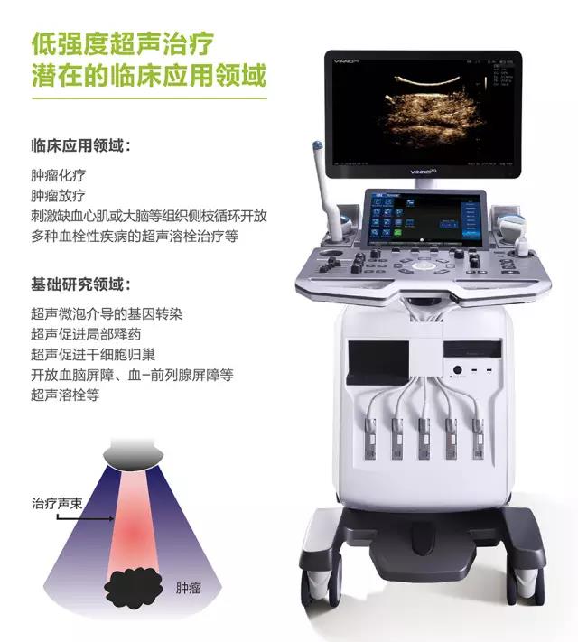 第三軍醫(yī)大學(xué)第二附屬醫(yī)院劉政教授長(zhǎng)期從事超聲空化研究,與飛依諾公司合作推出了在診斷超聲劑量下利用超聲空化效應(yīng)完成診斷與治療新機(jī)型 VINNO70超聲診療一體機(jī)。