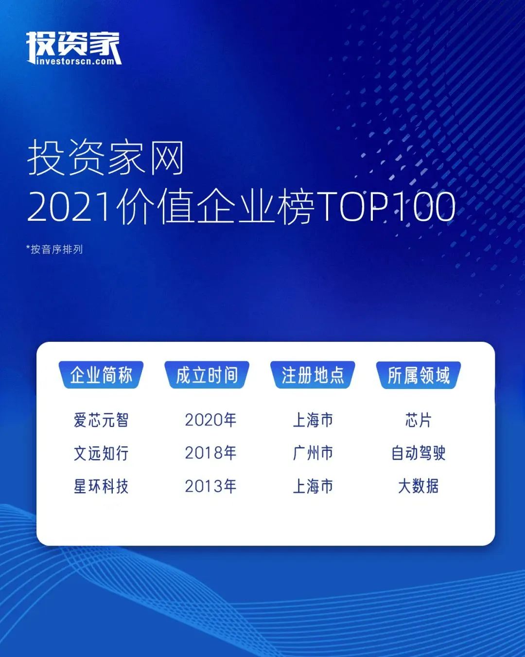 投資家研究院從創(chuàng)新、成長、融資、專利、活躍、影響力等維度,結(jié)合投資家網(wǎng)WFin數(shù)據(jù)庫,歷時數(shù)月最終評選出符合條件的100家企業(yè),共同組建“投資家網(wǎng)·2021價值企業(yè)TOP100”榜單。