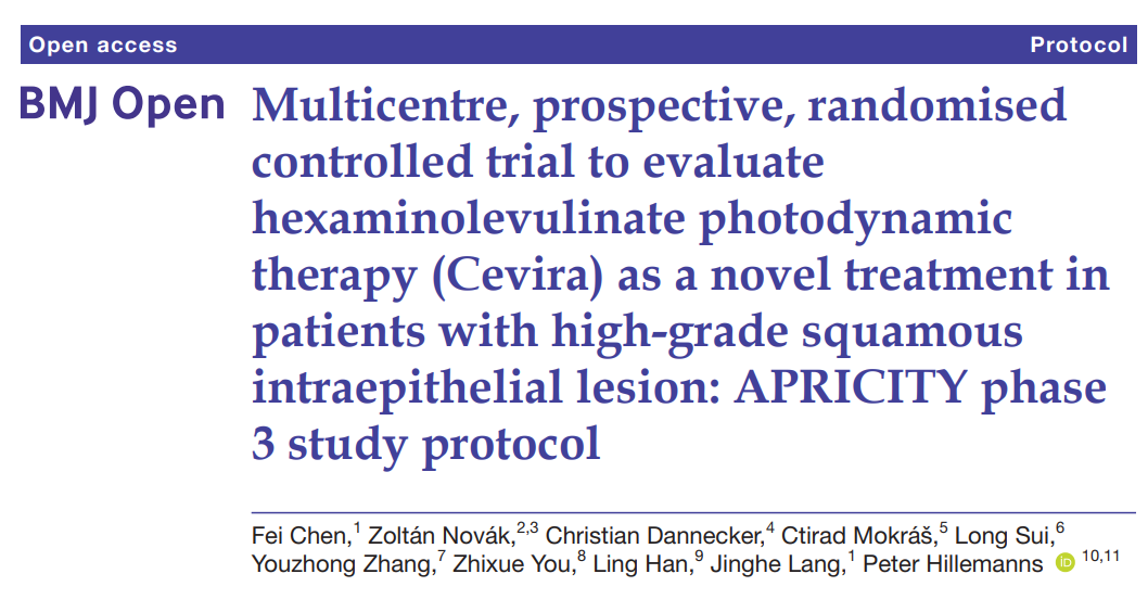 近日,啟明創(chuàng)投投資企業(yè)、專(zhuān)注于泌尿生殖腫瘤的全球化創(chuàng)新公司亞虹醫(yī)藥(688176.SH)宣布其APRICITY研究方案發(fā)表于BMJ Open。APRICITY是一項(xiàng)國(guó)際多中心、前瞻性、雙盲、隨機(jī)對(duì)照的III期研究,旨在進(jìn)一步評(píng)估光動(dòng)力藥械組合產(chǎn)品Cevira?用于治療宮頸高級(jí)別鱗狀上皮內(nèi)病變(HSIL)的有效性和安全性。