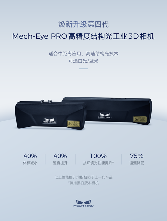 日前,啟明創(chuàng)投投資企業(yè)梅卡曼德機(jī)器人正式發(fā)布第四代Mech-Eye PRO(原Pro Enhanced系列)高精度結(jié)構(gòu)光工業(yè)3D相機(jī)。Mech-Eye PRO是梅卡曼德針對(duì)無序抓取、定位裝配、學(xué)術(shù)研究等對(duì)精度要求較高的中距離應(yīng)用場景而推出的旗艦產(chǎn)品。相較于上一代產(chǎn)品,第四代Mech-Eye PRO體積減小40%、速度提升40%、抗環(huán)境光性能提升100%、溫漂降低75%,可更好應(yīng)對(duì)各類復(fù)雜的應(yīng)用場景。
