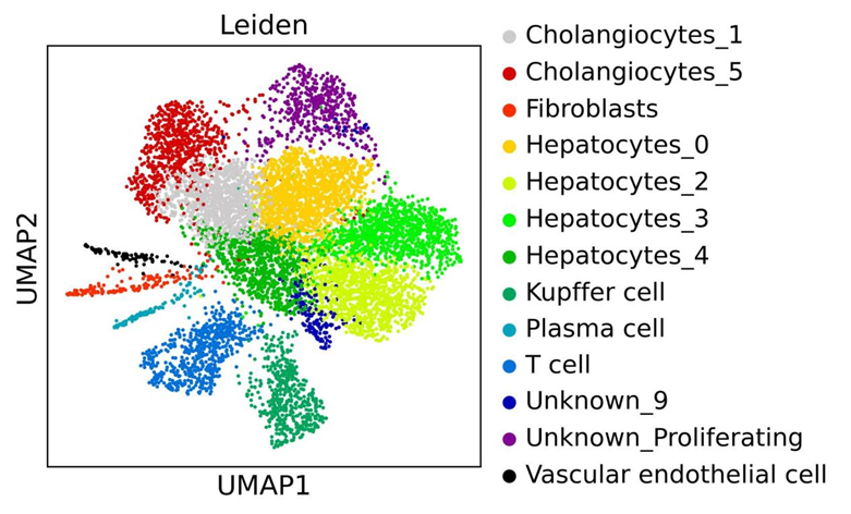 對凍存肝組織樣本進行VITA單細胞全長轉錄組測序,可以將其分為13個亞群。
