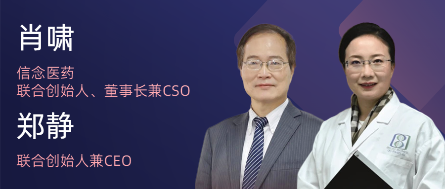 信念醫(yī)藥聯(lián)合創(chuàng)始人、董事長(zhǎng)兼首席科學(xué)官肖嘯與聯(lián)合創(chuàng)始人兼首席執(zhí)行官鄭靜