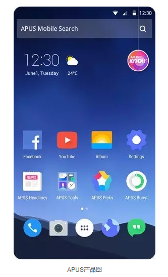 APUS,全稱A Perfect User System。APUS在英語里面是雨燕的意思,雨燕是地球上飛行速度最快、最輕盈的鳥類。名字的含義也能體現(xiàn)這款產(chǎn)品的特點:小、快、簡單。