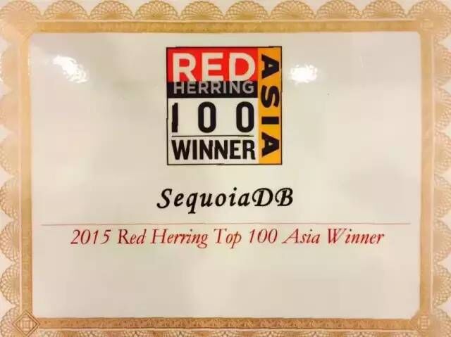 2015年9月16日,在2015年的Red Herring 亞洲峰會(huì)上,SequoiaDB巨杉數(shù)據(jù)庫,獲得了國際知名投資商業(yè)雜志《紅鯡魚》(Red Herring)頒發(fā)的“2015亞洲100創(chuàng)新企業(yè)”。