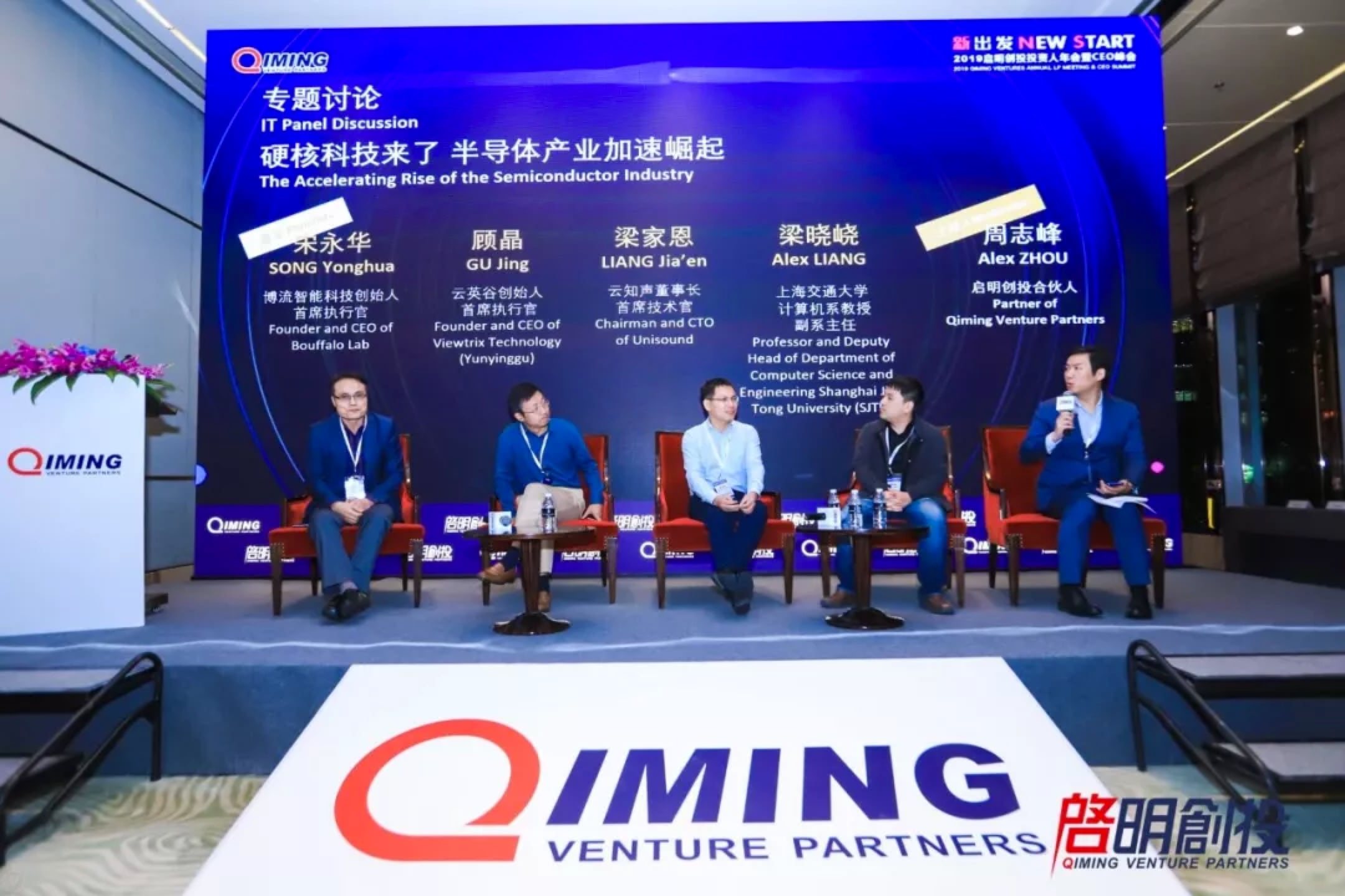 在信息技術專題討論-硬核科技來了 半導體產業(yè)加速崛起中,啟明創(chuàng)投合伙人周志峰邀請上海交通大學計算機系教授、副系主任梁曉峣,云知聲董事長兼首席技術官梁家恩,云英谷創(chuàng)始人兼首席執(zhí)行官顧晶,博流智能創(chuàng)始人兼首席執(zhí)行官宋永華展開討論。