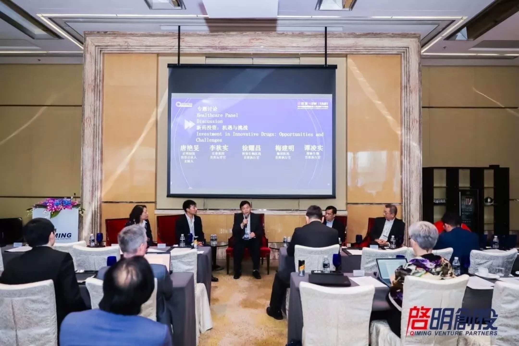 在醫(yī)療健康專題討論中,以《新藥投資:機遇與挑戰(zhàn)》為主題,主持人、啟明創(chuàng)投投資合伙人唐艷旻對話克睿基因首席運營官李秋實、和譽生物醫(yī)藥首席執(zhí)行官徐耀昌、德琪醫(yī)藥首席執(zhí)行官梅建明、締脈生物首席執(zhí)行官譚凌實。