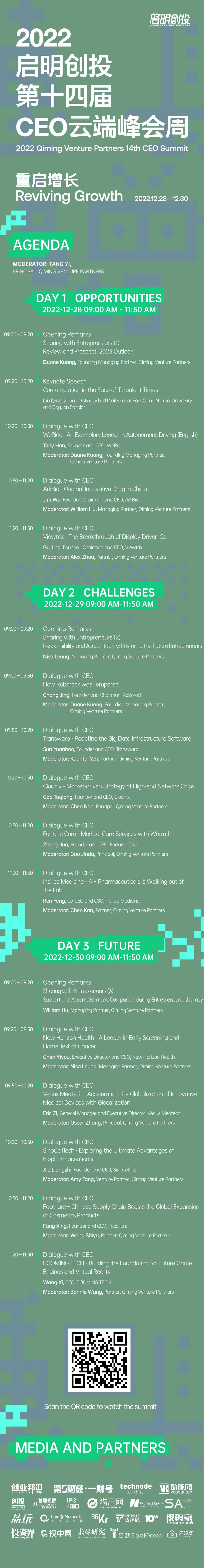 From December 28-30, Qiming welcomes you to join Qiming Venture Partners 14th CEO Summit to get inspired and prepare for the future.