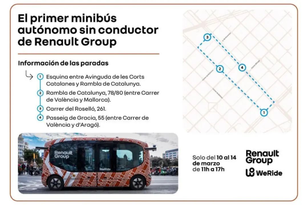 This will be WeRide and Renault Group's first test in Spain of their Level-4 autonomous vehicle for public transport. The initiative continues the experimentation carried out by the partners during the Roland-Garros 2024 tennis tournament.